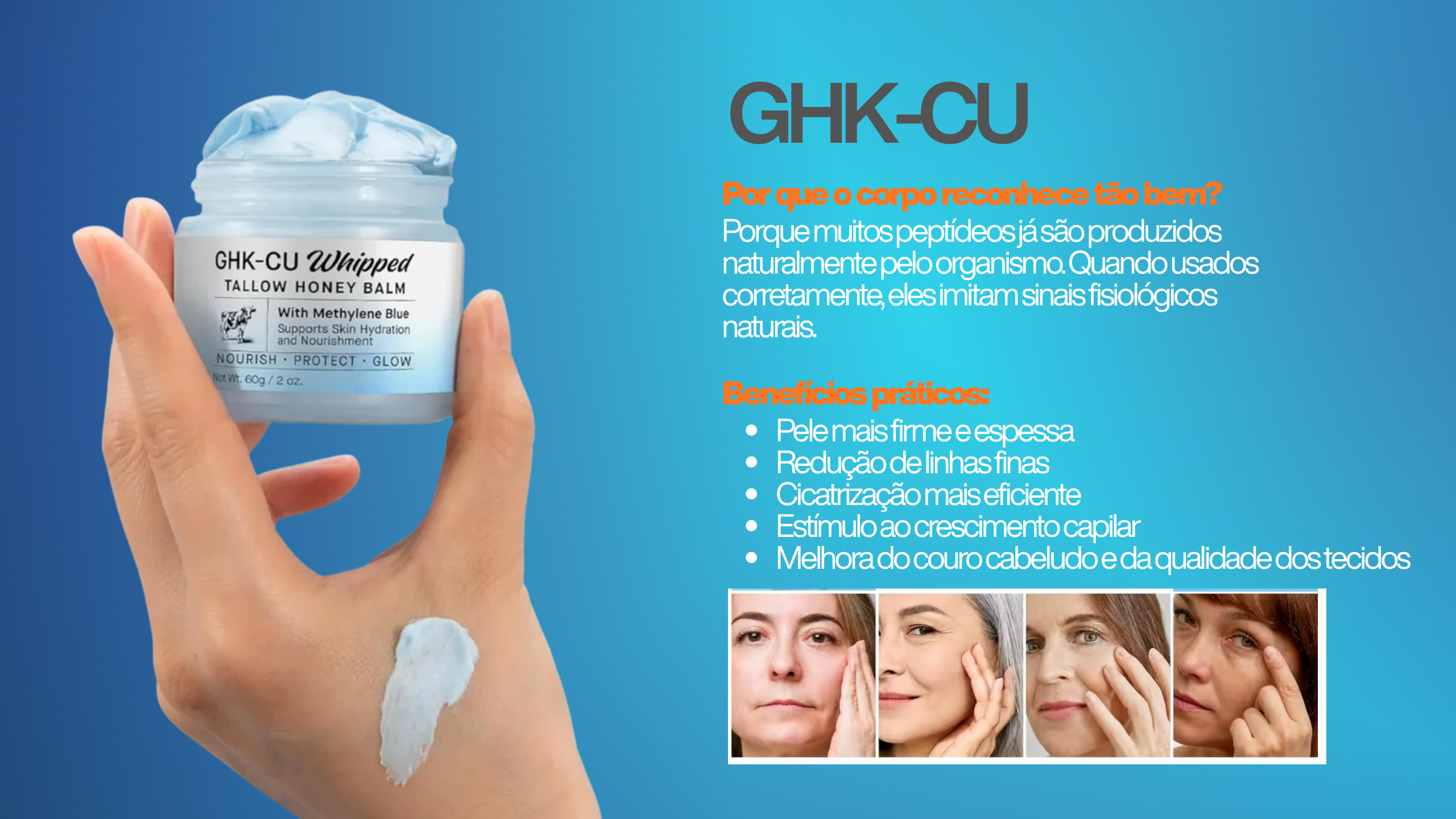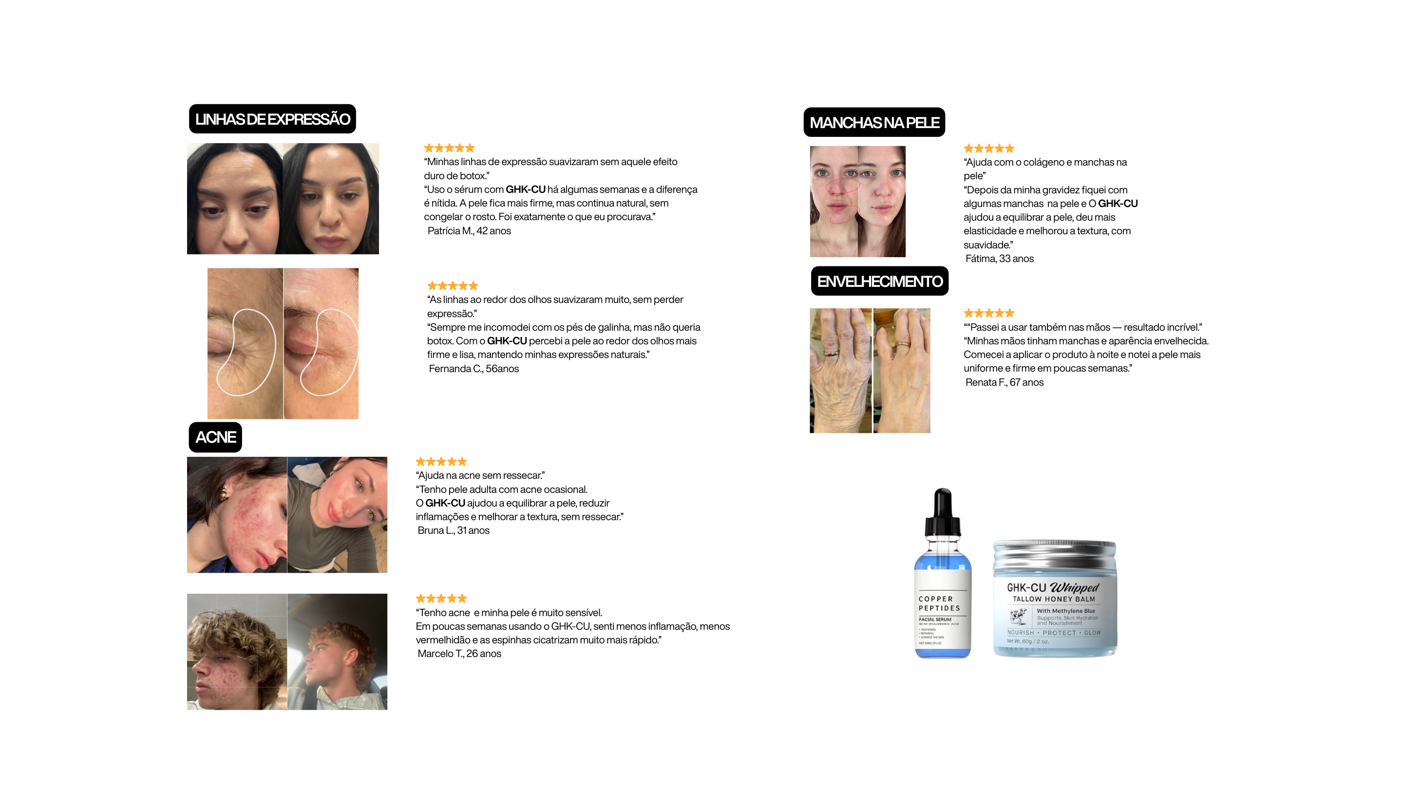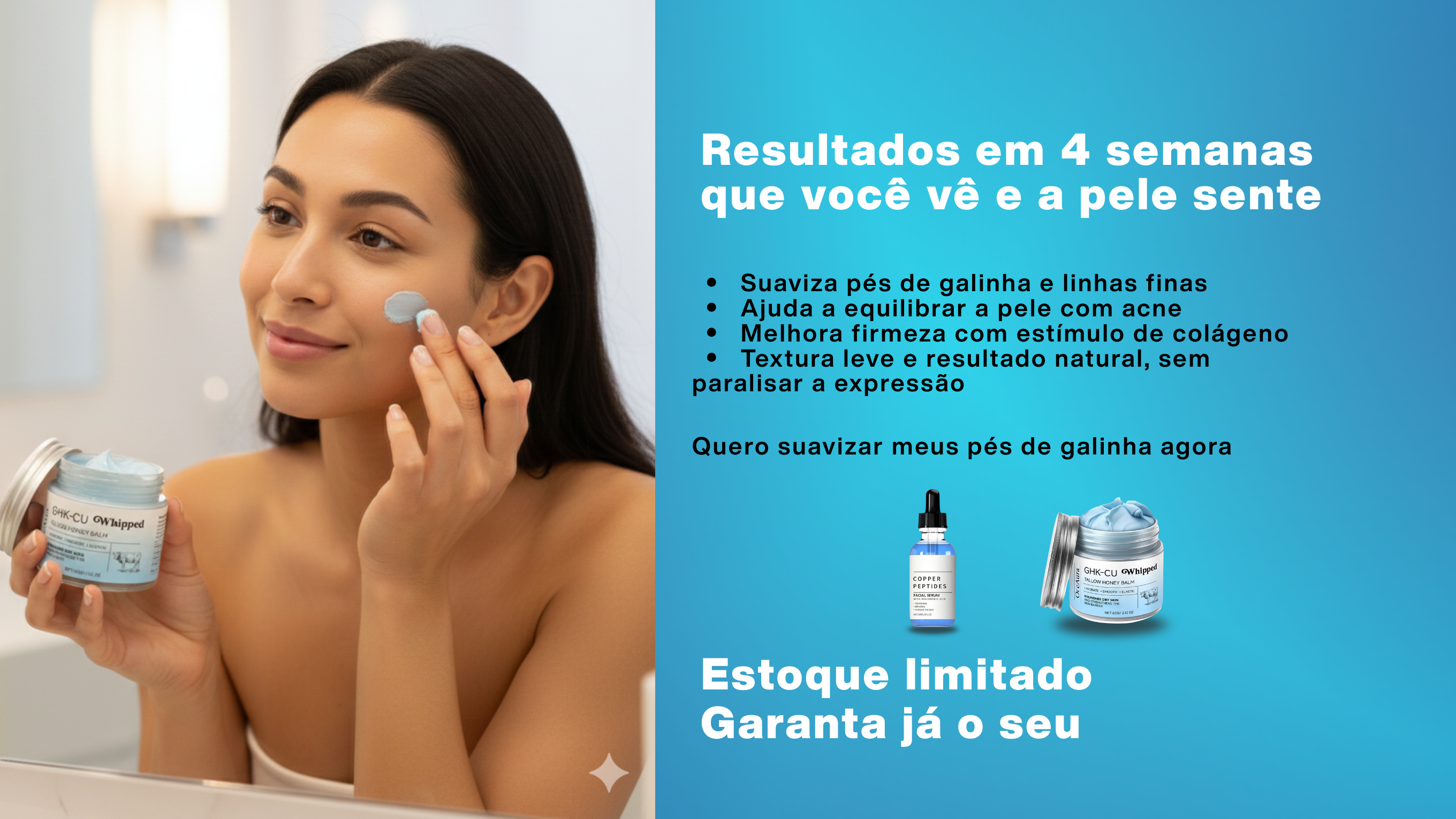 Fórmulas avançadas com GHK-CU para reduzir linhas finas, melhorar a textura da pele e devolver o viço natural, sem procedimentos invasivos.